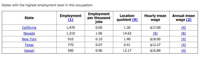 The following maps illustrate general guidelines for dance employment in the United States. While many states are highlighted, the highest concentration of Dance jobs can be found in New York City, Los Angeles, Florida, Chicago and Nevada. New York City leads the way in dance opportunities.
